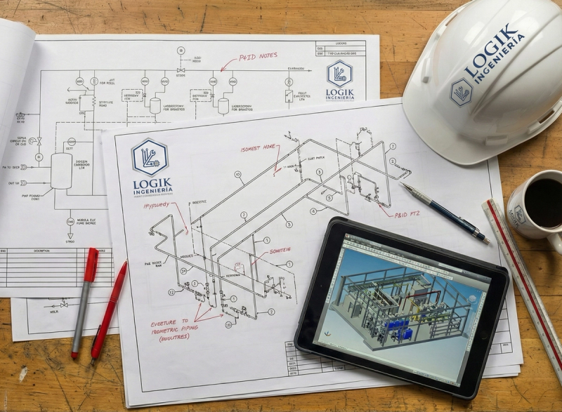 "Visualiza la ingeniería antes de comprar. LOGIK desarrolla modelado 3D de alta precisión y planos (Layout). Eliminamos errores de montaje, validamos ergonomía y aseguramos la integración perfecta de tus tanques y procesos industriales, optimizando tu inversión."